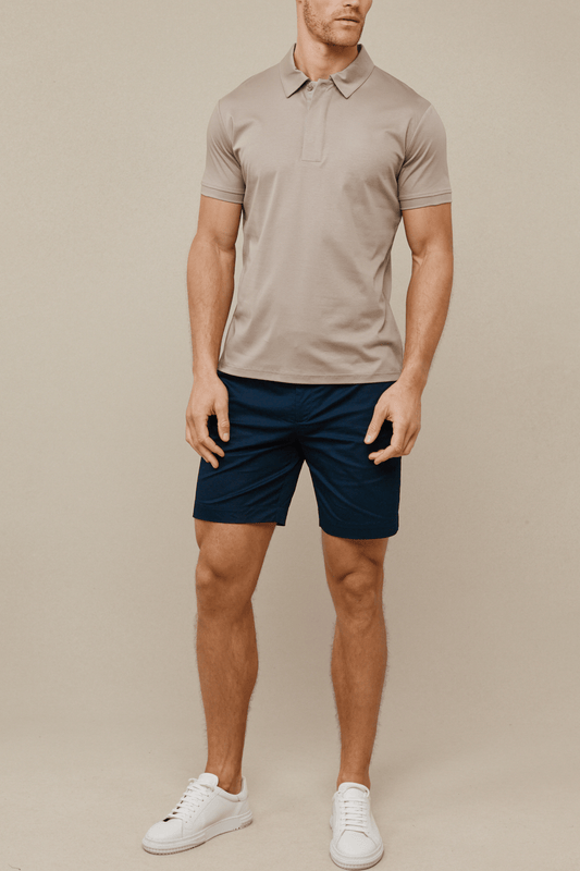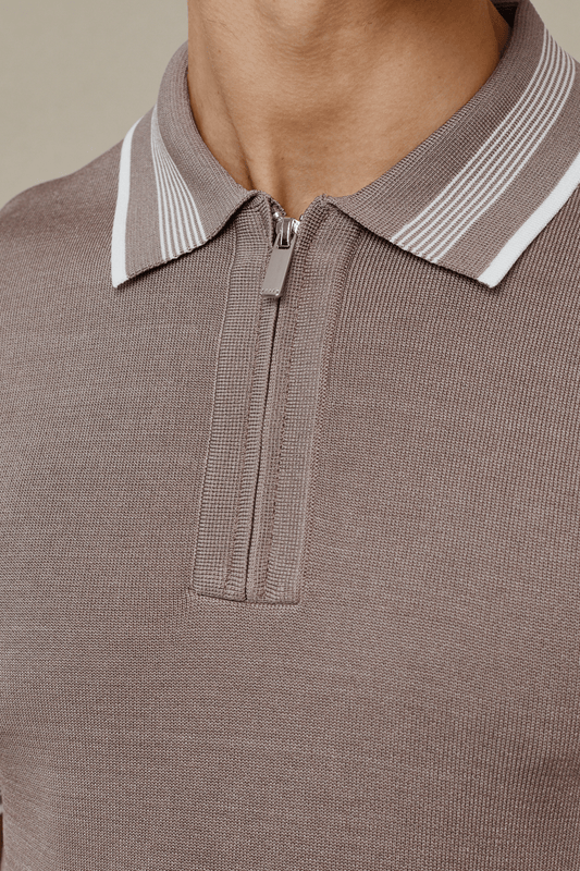 Artie Ruched Textured Long Sleeve Polo Shirt - Mushroom